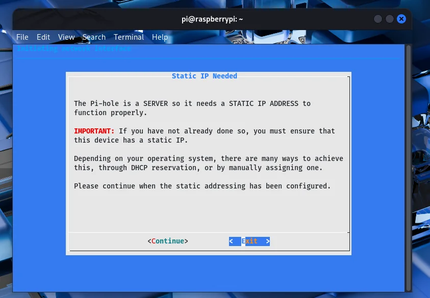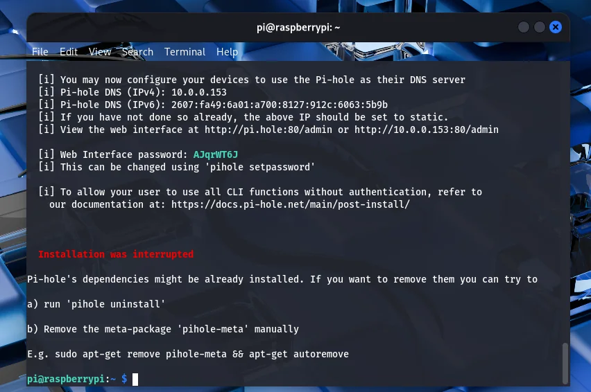 curl -sSL https://install.pi-hole.net | bash- β Network interface: eth0 (or wlan0 for Wi-Fi)